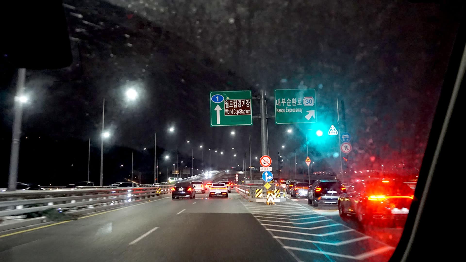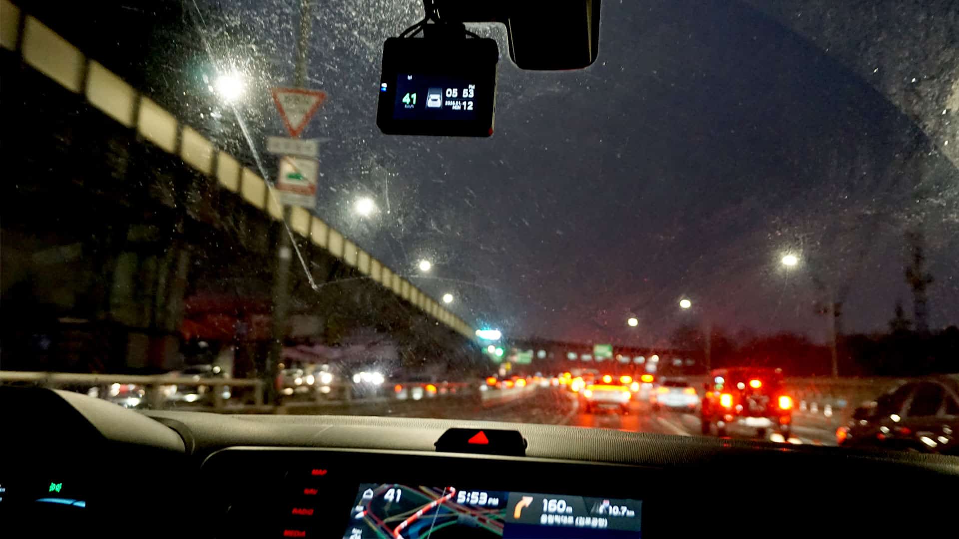 강변북로를 달려 상암동으로 향하는 길, 복잡한 도심의 가로등과 한강 다리의 조명들이 차창 밖으로 빠르게 스쳐 지나갑니다. 야간 운전의 시야를 선명하게 잡아주는자이스 드라이브세이프 렌즈 덕분에 반대편 차량의 헤드라이트에 불편함 없이 유유히 운전합니다.