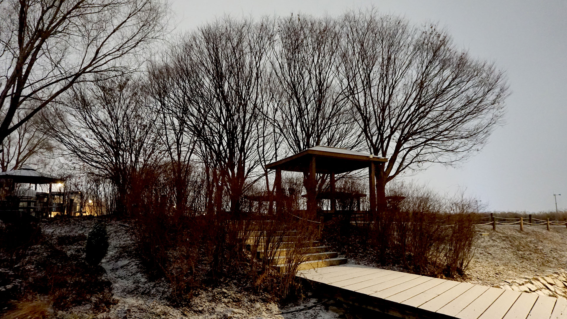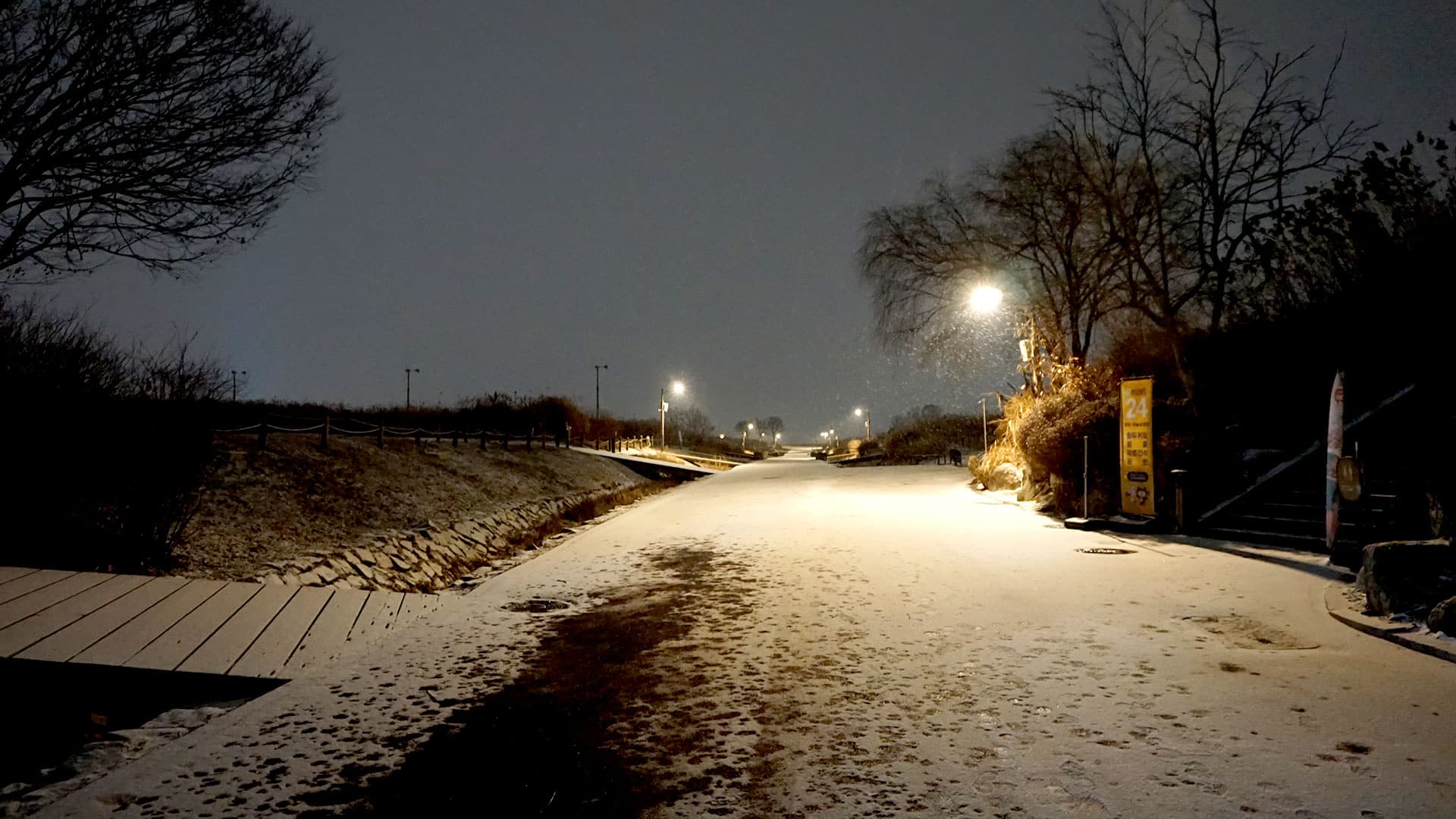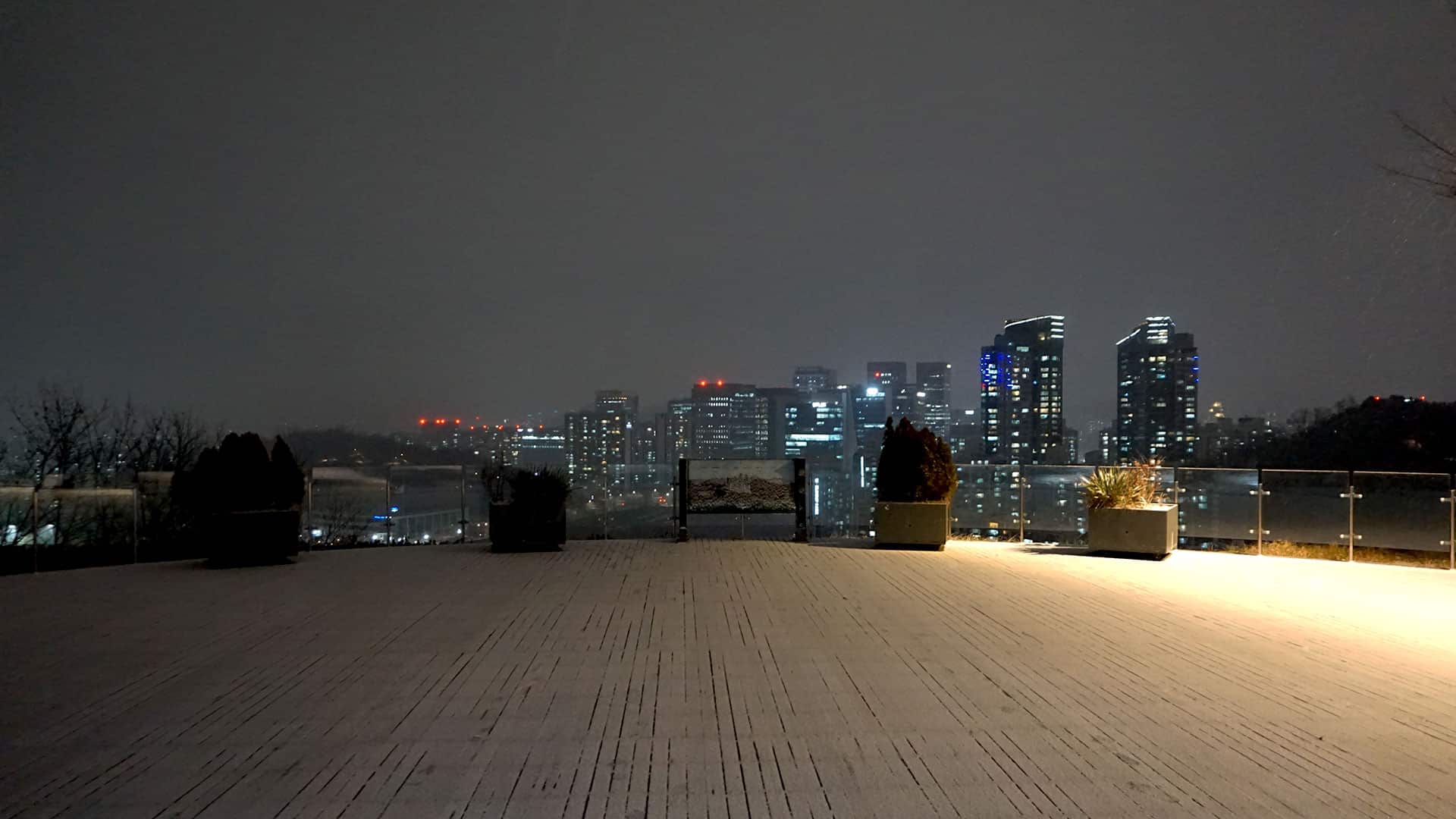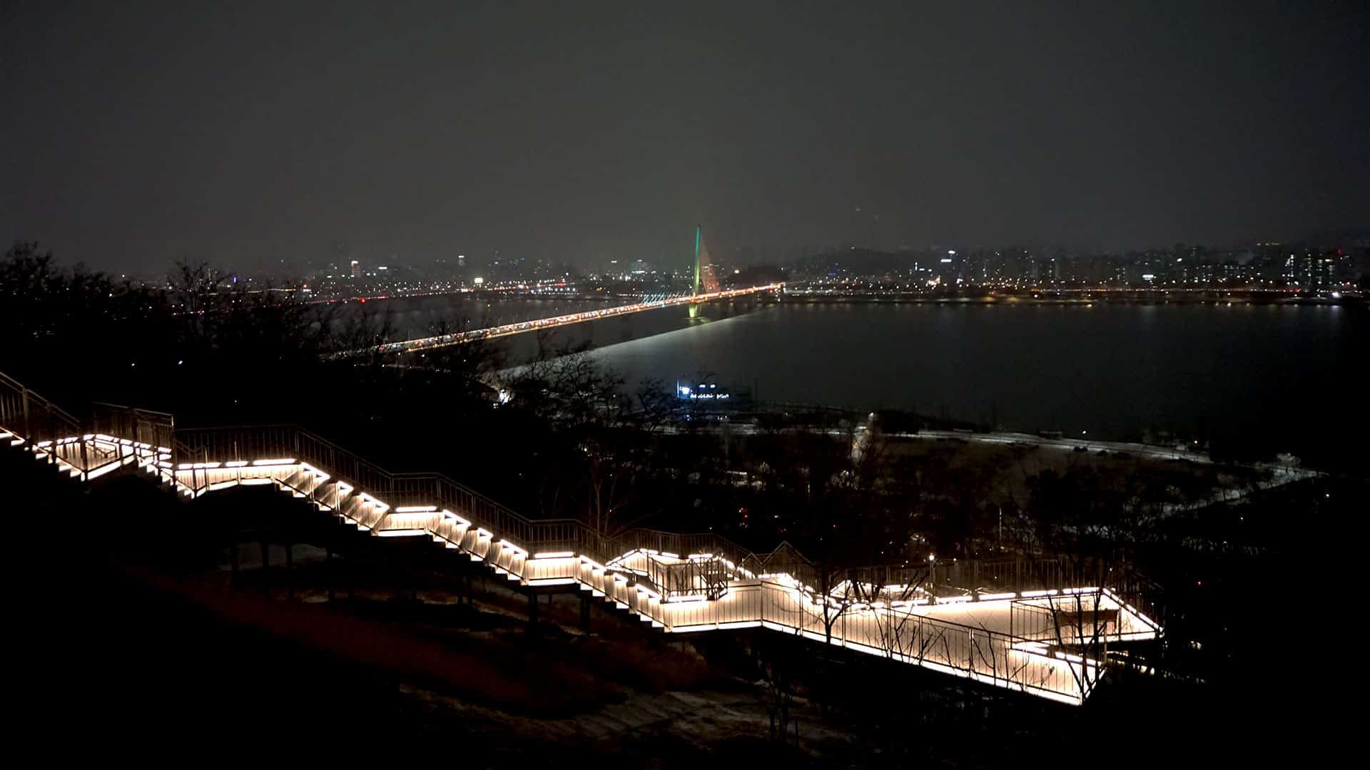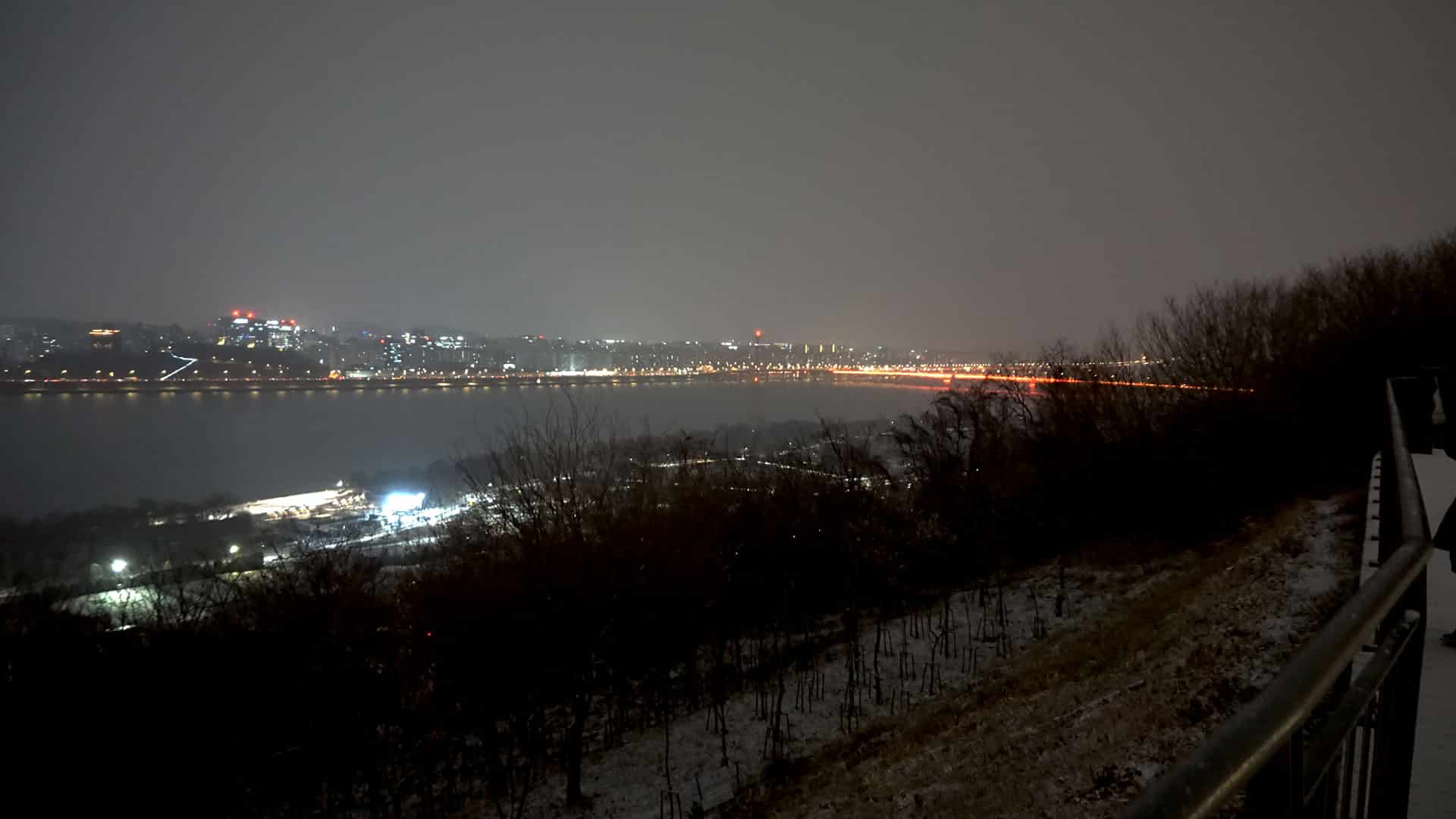 하늘공원 정상까지는 331개의 ‘하늘계단’을 오르거나 ‘맹꽁이 전기차’를 이용할 수 있습니다. 시간이 늦은 관계로 저는 계단을 택했습니다. 싸리눈을 맞으며 한 칸 한 칸 오를 때마다 월드컵 경기장과 한강의 모습이 조금씩 넓게 펼쳐지며 숨이 차오를 때쯤, 탁 트인 서울의 야경이 장관처럼 눈앞에 나타납니다. 자이스 드라이브세이프 렌즈를 착용하고 바라본 야경은 그야말로 파노라마처럼 펼쳐졌습니다. 어둠 속에서도 한강 물결에 반사되는 도심의 조명이 흩어지지 않고 차분하게 읽혀, 하루를 정리하는 야간 산책의 마무리가 더욱 평온해졌습니다.