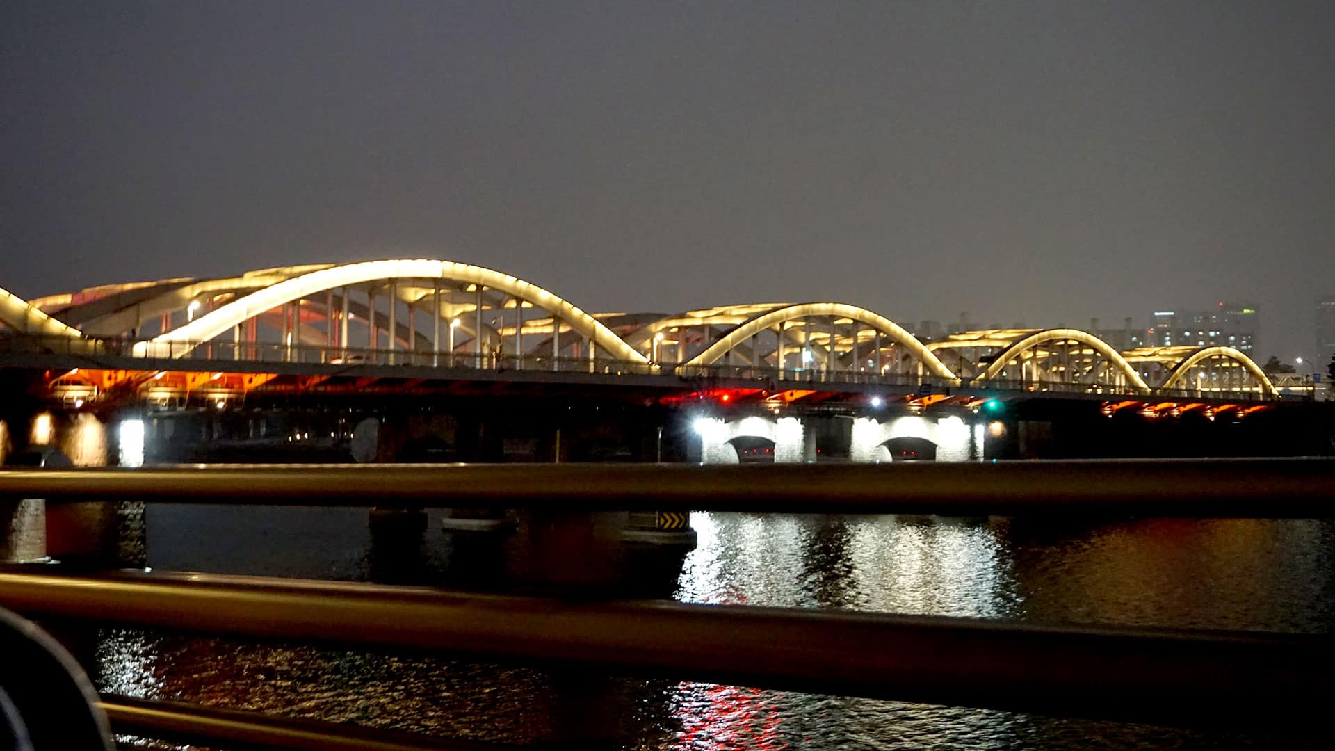 교량의 미학: 성산대교, 월드컵대교, 가양대교의 야간 조명이 한강 수면에 비쳐 운치를 더합니다.