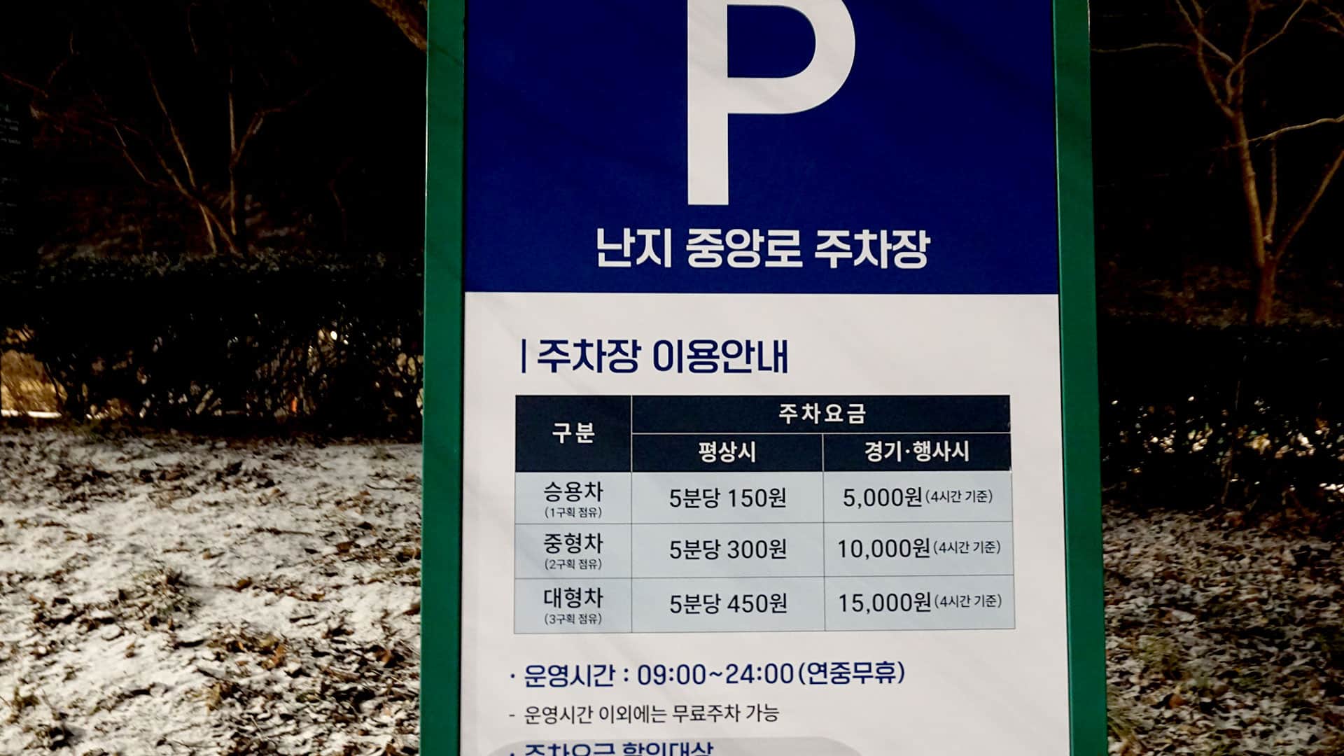 운영 시간: 월별 일몰시간 + 2시간 (유동적 운영)